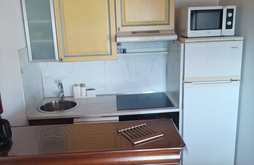 - Living room with TV, coffee table, 2 sofas / bed for 1 person, 1 bay window overlooking the terrace.