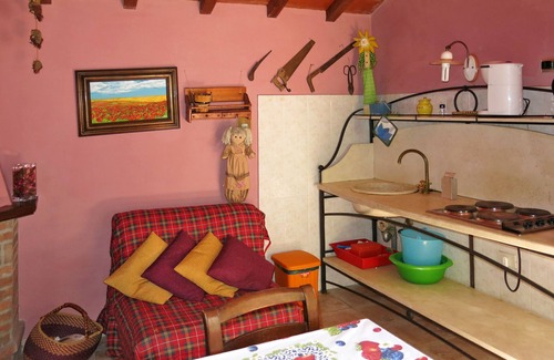 Country house "Castagni", 313 m a.s.l surrounded by trees and fields. 2 houses in the residence. 2 apartments in the residence. Property composed of main house and outbuilding 20 m from the centre of Orciatico, on the outskirts, 17 km from the centre of Volterra, 60 km from the centre of Pisa. For shared use: terraced garden with trees, natural garden, orchard, swimming pool (above ground) (6 x 5 m, seasonal availability: 02.May. - 03.Oct.). Barbecue. In the house: washing machine (for shared use). Grocery 20 m, supermarket 15 km, restaurant 4.5 km, bus stop 50 m, sandy beach "Cecina Mare" 45 km.