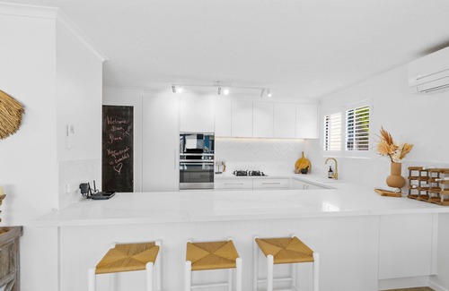 This modern coastal apartment has just undergone a renovation this year with a brand new luxury kitchen with stone benchtops, new flooring throughout and new laundry. It spans over 3 levels with open plan living, kitchen and dining areas with direct access to a large balcony, the perfect spot for entertaining friends and capturing the laidback lifestyle on offer in this location. The apartment features 3 queen bedrooms, 2 of which are en-suited and have private balconies. The additional family bathroom features a full-sized bath. The laundry includes both a washing machine and dryer. There is a large screen HD smart TV in the lounge and TVs in two of the bedrooms. The apartment has free unlimited wifi throughout and access to Netflix in the lounge.