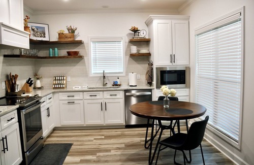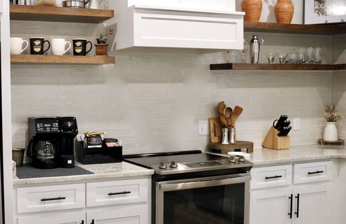 The heart of each Steel Bend Guest House is its fully equipped kitchen with top-of-the-line appliances and sleek granite countertops. Whether you’re preparing a quick breakfast or a gourmet dinner, the kitchen is stocked with all the essentials, from cookware to utensils, making meal preparation effortless and enjoyable. Coffee enthusiasts will delight in the variety of brewing options available, including ground coffee and K-cups, complete with all the extras needed for the perfect cup. This attention to detail ensures that guests can savor their morning brew in style.