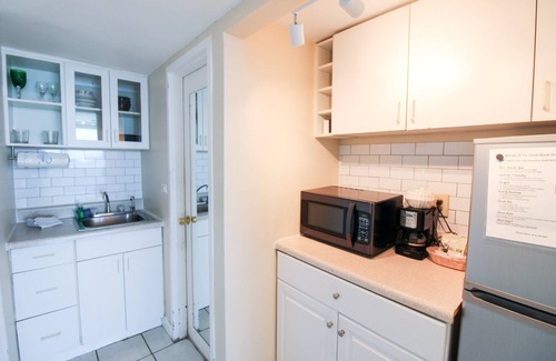 The studio apartment can fit up to 4 guests, with 2 queen beds. There is complementary WIFI access and cable TV.
