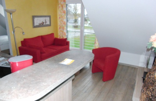 The spacious apartment is located on the first floor and is fully equipped with a pantry kitchen and dishwasher, a living and dining area with LCD TV incl. Radio, a bedroom with a bathroom area, shower and bath and a separate toilet. The living room couch is extendable and allows an extra bed for one more person.