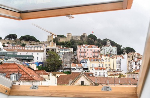 The apartment is two floors up with no lift and sits above the busy center, offering peaceful views of the São Jorge Castle, visible from most rooms and the balcony—perfect for enjoying your morning coffee.