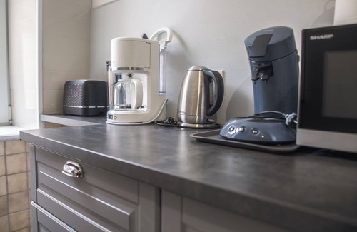 Prepare a home-cooked meal in the kitchen, complete with an oven, a stovetop, and a refrigerator, as well as a coffee maker, a lobster pot, and a microwave. Bathroom amenities include a hair dryer, towels, and toilet paper. Other amenities include bed sheets, an ironing board, bike storage, and heating.