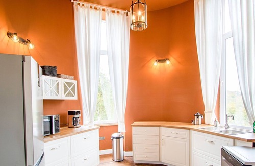 With its untouched exterior, one will truly feel like they are in another era. But thanks to the renovations inside, they can enjoy all the comforts of modern times. For example, the castle has two beautiful, fully equipped kitchens: in the basement there is a large semi-professional kitchen for large groups, and on the 2nd floor there is a smaller, but still very well equipped kitchen.