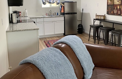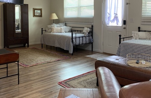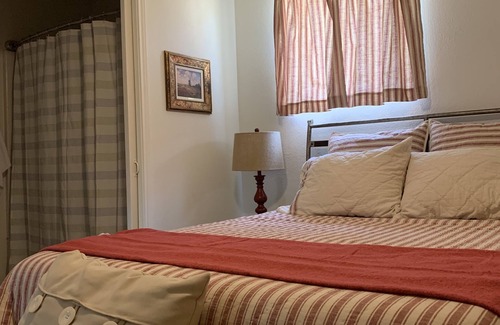 New Listing! Enjoy the town for its Alsatian flair and situated on the Medina river. Easy access to Texas hill country and hunting season locations. Plenty of parking, stand alone unit, 3 adults or family of four, recently added a sleeper sofa so can add another adult or child. It is located within walking distance to historic sites of Castroville, convenient access off highway, easy drive in all directions to, San Antonio, Six Flags, and Sea World. Famous Dzuik’s meat market is walking distance, Haby’s bakery and public pool nearby (open summer and winter-heated!) Great hiking trails and butterfly garden in the neighborhood. Spring is poppy season and the apartment is on the town’s historic walk and poppy viewing trail. Kitchen includes full-size stove/oven (with air fryer option), microwave, apartment size refrigerator/freezer. Great location for many day trips! The apartment faces Amelia Street. Great space for hunting season!