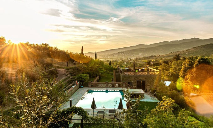Best-rates for the Castiglion Fiorentino villa starts from $913 per night with includes Air Conditioner, Designated Smoking Area, View, Child Friendly, Private Pool, Ocean View, Balcony/Terrace, Fireplace/Heating, Guest Services, Hot Tub, Laundry, Parking, Wellness Facilities, Barbecue/Outdoor Cooking, Kitchen, Pool, TV, Accessibility, Bedding/Linens, Internet with all other amenities. Perfect for Weddings is committed to ensuring every guest experiences a comfortable and extraordinary stay, whether planning a romantic getaway, a honeymoon, a pet-friendly stay, or celebrating with the entire wedding party.