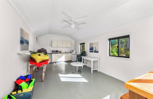 Guests have access to the main house, two self contained studios, boat house and jetty. The garage will be locked and not available to guests. There is parking for cars on the driveway.