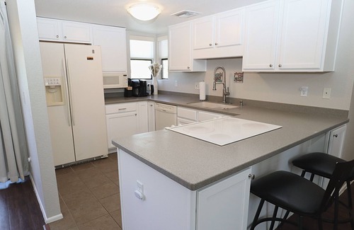 -Bright and airy kitchen is stocked with everything you need to create your favorite meal
