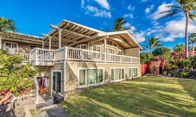 Hawaii, house, hot tub, ocean, deck, patio, garage, quiet, golf, beach, diving, swimming, fishing, sun, yard, private, ocean view, spacious, gourmet kitchen, wifi, cable, 4 bedroom, lanai, sunset, convenient, bbq, quiet, non-smoking, clean, affordable, reviews, warm, tropical, sunbathe, resort, family, kids, child friendly, best location, best beach, family reunion, outdoor shower, fire pit/