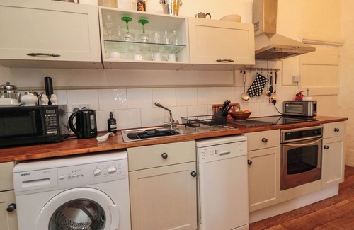Catherine Parr's Sewing Room is a first-floor apartment with a studio-style layout featuring a double bed, dining area, and sitting area. The bathroom includes a bath with a shower over, an antique wash stand, and a high-level WC. The kitchen is equipped with an electric oven, induction hob, microwave, fridge/freezer, and dishwasher. The apartment has oil central heating, a Smart TV, and WiFi. Fuel, power, bed linen, and towels are included in the rent. Outside, there is an enclosed inner courtyard garden with gravel, lawn, furniture, outside seating, and a barbecue. Ample private off-road parking is available, and guests have exclusive use of the extensive castle grounds. Please note that pets and smoking are not allowed. Be aware of the spiral staircase leading to the entrance and the potential for uneven surfaces due to the property's age. The castle owner lives on-site and is available to assist guests. Enjoy your stay at Catherine Parr's Sewing Room! Please ensure you are accurately adding any pets to your booking so the owner can set up the property accordingly.
