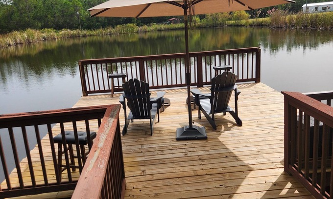 'Cattail Cottage' is centrally located approx. 30 mins from Savannah, Pooler, and Statesboro (only 20 mins west of I-95). The cottage sits on an 8 acre estate which boasts a 1 acre stocked pond with dock. Enjoy catch and release fishing, a paddle boat ride, or just sitting back on the patio. PET FRIENDLY - Entire property is fenced. With its secluded and quiet atmosphere and cozy interior, this little cottage will make you feel miles away from the hustle and bustle while still being close!!! (Pets must be listed on your booking)