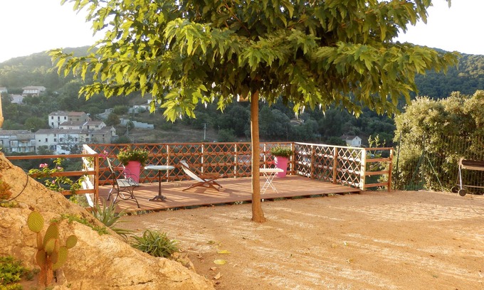 Cottage on the ground floor of the villa (independent entrance, parking) in Cauro in southern Corsica, small calm and peaceful village between sea and mountains, composed