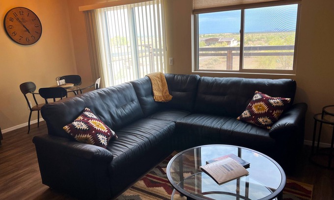 Rural and private one bedroom apartmentabove the garage of the main house. Newly built with comfortable furnishings and great views of the Sonoran Desert. Theapartment is situated on the edge of Cave Creek Recreation area and within walking distance to the many hiking/biking trails within the park. The accommodation is fully furnished and boasts stainless appliances and a well-equipped kitchen. Smart TV with Netflix and Wi-Fi is available. The property is approximately 8 miles to the center of Cave Creek, 10.00 miles to Desert Ridge and 30.00 to downtown Scottsdale. Local golf courses include Rancho Manana, Dove Valley and many more. There is a furnished walk out deck with a covered BBQ area below.