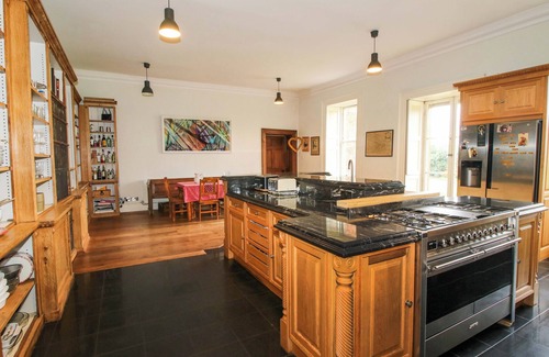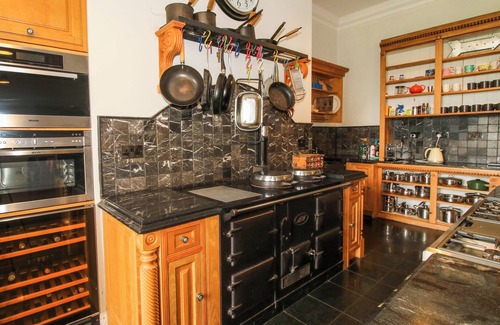 Amenities: Oil central heating. Electric oven, six-ring gas hob, microwave, American-style fridge/freezer, 1 x washing machine, tumble dryer, dishwasher, wine chiller, coffee maker, steamer oven. Smart TVs, WiFi, and a selection of books. Fuel, power, and starter pack for woodburning stove inc. in rent. Bed linen and towels inc. in rent. Gravelled driveway parking for 10 cars. Gardens with one-acre lawn, patio, furniture, barbecue, fire pit and smoking shelter with access to formal gardens, 4-acre field and trout stream with parkland walks. Four well-behaved dogs welcome. Sorry, no smoking; a pergola in the garden can be used for smoking outside, however please dispose of cigarette butts responsibly. Shop 2 miles, pub 2.1 miles. Note: Owner lives on-site and will come and clear the woodburning stove early every morning. Note: Chef services available by prior arrangement with owner. Note: Due to the age and character of the property, there are steps throughout, including in and out of showers. Note: Hen and stag, family celebration, and shooting parties all welcome. Note: Maximum 20 guests. Note: The property has CCTV externally by the entrance gates. Note: EE mobile reception is not strong in the area, however other mobile networks work fine and there is WiF. The property only accepts 3 night bookings