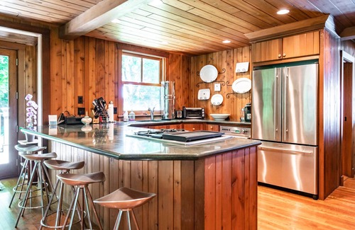 Situated on 2 acres this stunning beachfront cottage has striking views of Cedar Bay. With 3 Bedrooms boasting Lake Views and 3 Baths it comfortably sleeps 9 guests with a maximum of 6 adults. A very spacious home with all the necessities. The large living room and two enormous screened in porches provide plenty of room. A one of a kind secluded cottage that offers the rustic feel of a cabin, but on a huge scale. Note this home has and attached private separate unit not used as a short term rental and a second cottage behind that is a vacation rental and will share the beach. **Preference will be given to Sunday check ins for July and August**