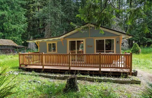 Escape to the enchanting Storybook Cabin! This cheerful blue retreat is tucked among trees, with deer frequently gracing the front lawn. Relax in your private hot tub, surrounded by nature, and enjoy eco-friendly comforts like cedar-lined walls, natural landscaping, and a cozy tiny-home design. Just 1 mile from Mt. Rainier, it’s perfect for beating the crowds! Immerse yourself in this magical fairy-tale setting in Ashford, WA. Book your dream escape in Ashford, WA today!