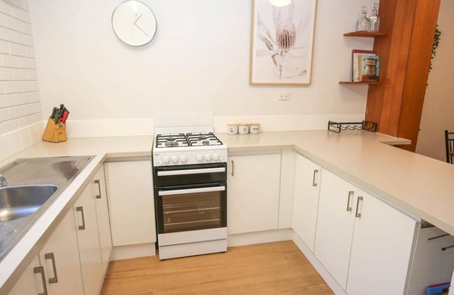 This charming accommodation features two well-appointed bedrooms that can comfortably sleep up to five guests, making it ideal for family and friends. The open-plan living and dining area is flooded with natural light, equipped with modern amenities such as reverse cycle heating and cooling, a television, and a DVD player for your entertainment. Plus, the fully equipped kitchen boasts all the essentials, including an oven, stove, and full-size fridge, ensuring you have everything needed for pre-wedding meals or post-celebration gatherings. Step outside to your private patio, or unwind in the large grounds featuring expansive lawns and a shared BBQ area, perfect for relaxation and outdoor festivities.