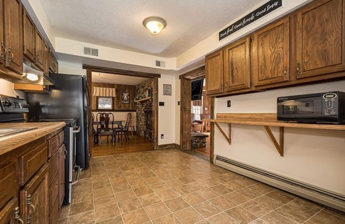 As you pull into the private entrance of the Cedar Lodge you will be inspired by the whispers of the babbling brook running through the property. This four bedroom and two bath home with two separate living areas is gorgeously decorated in a rustic theme. As you enter the home you are greeted by an enormous two sided decorative fireplace surrounded in beautiful stone. The fully equipped modern kitchen with dining area is lined with floor to ceiling windows that is sure to allow you to catch a glimpse of the area wildlife as you start your day off at the Cedar Lodge. The spacious living areas with hardwood floors are the perfect places to grab a book, watch your favorite television show, or just relax with the family. The first floor also offers a bedroom, bathroom, laundry area and stone bar. The upper level of the home is accented with beautiful hard wood floors featuring three bedrooms and a full bath. The natural stone and rustic wood interior throughout the home is sure to put your mind and body at ease. After an adventure filled day in Ohiopyle the backyard is the perfect place for your group to unwind! The Stony Fork Creek borders the property and offers serene seating areas on the property. There is a roomy deck which overlooks the backyard and hosts a large picnic table and charcoal grill for outdoor entertaining! There is also a stone fire pit and horseshoe area for your guests to unwind and get that ringer!! This property is dog friendly. Max of 2 dogs * Additional flat fee is charged per pet, if needed, after we receive your signed Rental Agreement. A stay at the Cedar Lodge is sure to create lasting memories for your entire group.