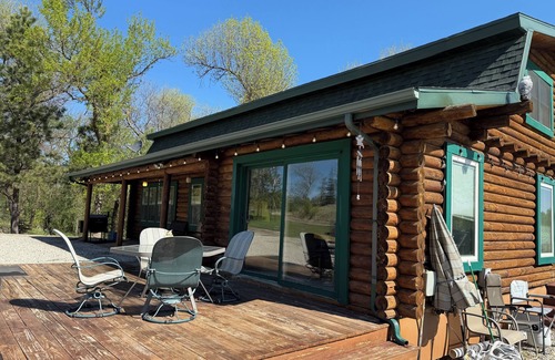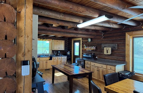 Charming 4BR, 2BA log cabin just outside Dunseith in the heart of Turtle Mountain. Sleeps up to 10 with 1 king, 3 queens, 1 twin, and a sofa bed. Features vaulted ceilings, gas fireplace, full kitchen, large dining table, and two decks. Minutes from Lake Metigoshe, Metigoshe State Park, hiking, and fishing. Perfect year-round retreat for families and groups seeking nature and comfort.