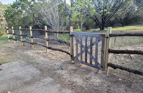 Welcome to your serene retreat nestled on 14 acres of picturesque land, complete with a tranquil pond and accommodations for your equine companions. This charming log cabin features 2 bedrooms, each furnished with a luxurious king-size bed, providing a comfortable haven for up to 4 guests. With 2 full bathrooms, a spacious living area, smart TV, full kitchen (with all the necessary utensils, basic spices, coffee, filters and even ketchup, mustard and mayo) your stay promised relaxation and convenience. Step outside to your expansive deck and soak in the natural beauty of the surroundings, perfect for relaxing. The dining area comfortably seats 5 to 6 guests. Stay connected with wireless internet and enjoy provided towels, linens, air conditioning, and other essentials for a comfortable stay. We want to let our guests know we are beekeepers, hives are over 500 feet from the cabin, they are busy working and will not bother anyone. If you would like to see them up close and personal, let us know, as we have an extra bee suit and we will take you on a tour. Grill provided upon request at booking. What's nearby: Lake Granbury just a short 10-minute drive, Granbury City Beach, enjoy fun-filled activities and waterfront relaxation within a 17-minute drive. Historic Granbury Square, boasting quaint shops, restaurants and historic sites, just a 17-minute drive from the property. Harbor Lakes Golf Club located within 18 minutes from the property. Revolver Brewing, sample craft beers and enjoy brewery tours just a short 10-minute drive. Secluded away from the city so you can see the stars at night, yet close to grocery, restaurants, and Historic Downtown Granbury. Escape the hustle and bustle of city life and embrace the tranquility of nature at Cedar Ridge Log Cabin. Book your stay now and create unforgettable memories amidst the beauty of Granbury! Ready to embark on your rustic retreat? There is a second log cabin on the property that is a 1 bedroom (king bed) 1 bath. See Cedar Vista Log Cabin on 14 acres. 3940470