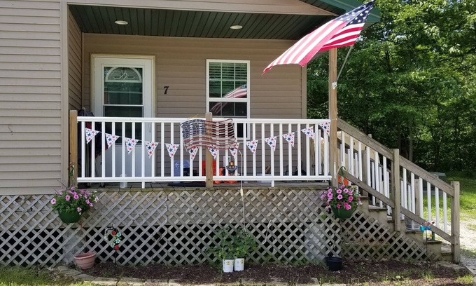 Cabin #7 is a 2-bedroom vacation home that's perfect for the whole family. The master bedroom boasts a king size bed, plus a 2nd bedroom complete with twin bed, including a trundle bed, and a sleeper sofa in the living room for two more guests. The full kitchen is perfect for whipping up an indoor meal, including a dining table & seating at the bar. Or, fire up the charcoal grill and enjoy eating outdoors at your own picnic table. At night, gather round the fire pit and enjoy some nighttime stargazing. In the morning enjoy a cup of coffee on your covered porch. Panoramic views of the Cedar River are just a short, pleasant walk away, and with a full bath plus a washer & dryer, it's easy to freshen up from the day's hiking, exploring local spots, and other area adventures.