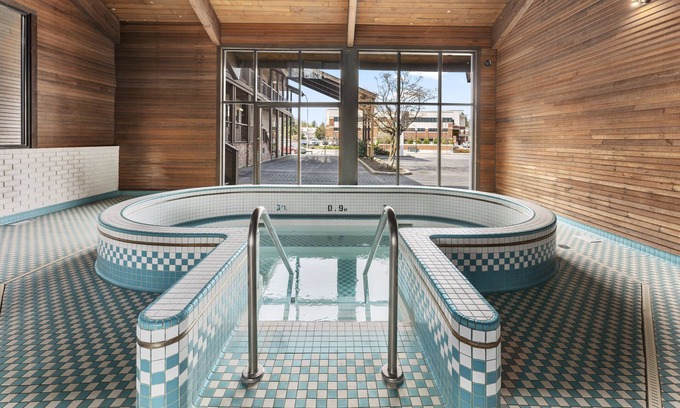 An outdoor pool and a hot tub are on site. Other recreational amenities include a 24-hour fitness center.