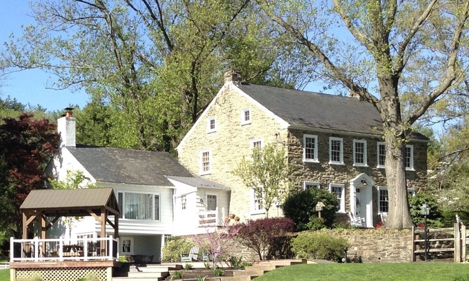 We are proud to offer you our circa 1850 stone farmhouse. This historic Pennsylvania home has a private setting in the heart of southern Lancaster County's Amish country. In fact, many of the neighboring farms belong to Amish families. It is situated on a immaculate 50 acre working horse farm which offers you the unique ability to experience the tranquility of the country without giving up any of the modern conveniences you rely on. Relax pool side while watching peacefully grazing horses at pasture or listening to the brisk cadence of Amish buggies rolling by. Enjoy the experience of a leisurely walk through the landscape of the farm where you can glean a true appreciation of authentic country living. This stunning farmhouse boasts many modern conveniences such as 4 large TVs, high-speed Internet, 2 huge master bedrooms with their own private baths, plus the 3rd full bath was totally remodeled in 2022. The18 foot shady, screened porch and comfortable furnishings will assure your enjoyment while also satisfying your desire for the simplicities of country life. The kids (and adults) will love sitting around the fire pit roasting marshmallows. The experiences you enjoy here at Shallowbrook Farm home will be remembered for years to come. Peaceful, playful and forever memorable You won't want to leave!