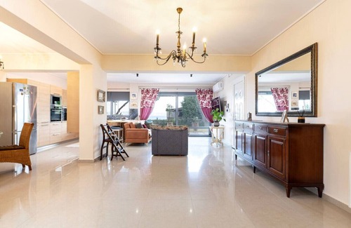 Perched on a tranquil hillside in Kos, this spacious ground floor apartment seamlessly blends neoclassical architecture with modern elegance. Its grand design features classic columns, detailed finishes, and large windows that capture stunning views. Inside, the open layout offers both comfort and style, with a perfect fusion of traditional charm and contemporary luxury, providing a serene retreat amidst nature’s beauty.
