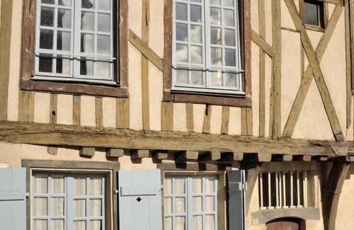 In the historic safeguarded district of Chartres, on the ground floor of a half-timbered house, 500 meters from the cathedral, a charming apartment with beams and tomettes decorated with a priest's garden.