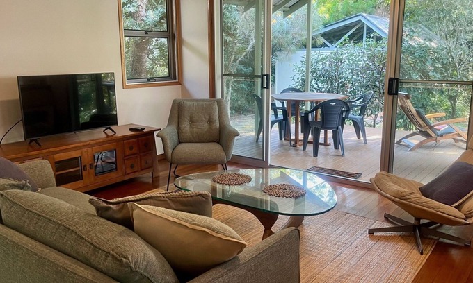 Gorgeous beach house situated only five minutes walk from the pristine surf beach via a bush track.