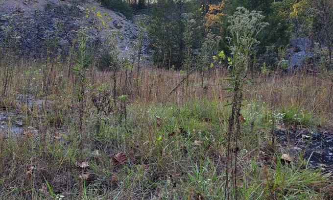 This site is at the edge of the smaller former-limestone quarry and so quite close to the communal fire pit, grill, and picnic table. The ground is quite firm so plan accordingly or reserve a cot. This spot is the closest to our humane society shelter next door so sometimes there is audible barking and you may want to bring earplugs if you are a light sleeper or choose one of our campsites further to the west. Small campers are welcome, we ask that you unload and then park cars/trucks at entrance.