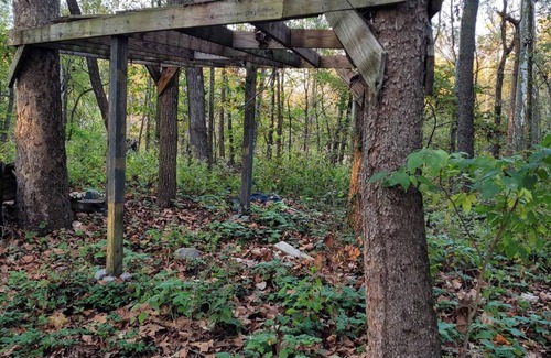 This wooded site is at the end of the upper trail around the big quarry edge and overlooks the train tracks and the wetlands. This is a lovely, tranquil spot and the most private we have to offer. Drive in to unload and load then park at street entrance. Fire ring at site. Due to the drop overlook, this site is not suitable for children under 18 yrs.
