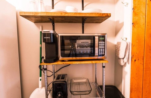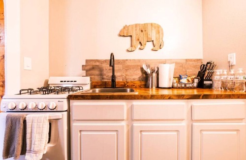 This apartment has a cabin like feel with natural wood walls, but has been updated with all the modern amenities needed for your getaway