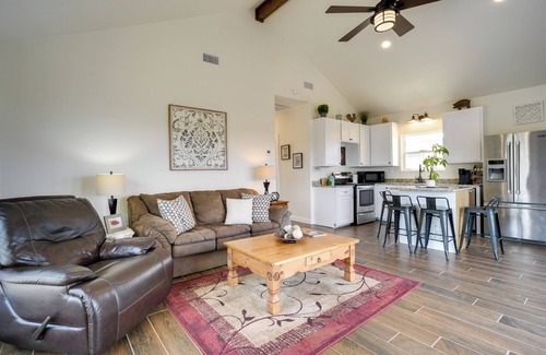 Savor slow mornings and starry nights at this idyllic TX vacation rental — a blissful escape for couples seeking respite. Whip up breakfast using fresh eggs collected on-site before enjoying a day trip to the beautiful wine country in Fredericksburg or a short jaunt to San Antonio for a day of shopping and fine dining. Whatever you choose, feel at ease retreating to the 1-bed, 1-bath 'Skyview Casita', featuring a countryside setting with a large deck, a gas grill, Smart TVs, free WiFi, and more!
