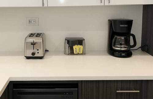 You’ve got a chill living area with a sofa to relax and a dining table for meals or laptop time. The kitchen’s fully stocked—microwave, stove, oven, fridge, even a dishwasher—so whether you're heating up meals or cooking something from scratch, you’re covered. The bathroom’s clean and simple, and the Wi-Fi’s reliable if you need to get some work done (or just stream your favorite shows).