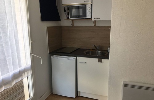 Ideal location for this 2-room apartment for 2 people with a beautiful terrace facing west and south in the city center of Merville Franceville and 200 m from the beach.