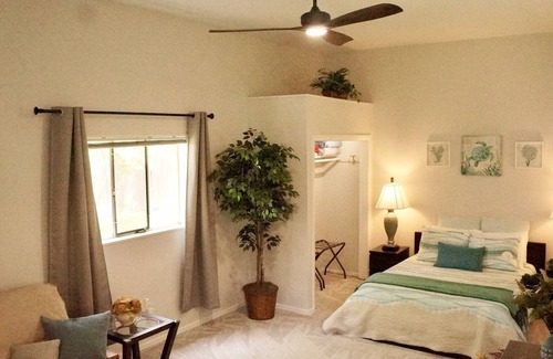 Enjoy this spacious 900 sf 2b1b suite of our lovely home with its own private entrance & driveway. It is centrally located and minutes to Pearl st, restaurants, shops, hiking trails + all that Boulder have to offer. The large bedroom (open, oversized, not enclosed) with high ceiling takes comfort to a new level. A queen, two full beds comfortably fit 4 people (3 unrelated people max). The washer/dryer & amenities help maintain your continuity of lifestyle while enjoying your visit to Boulder.