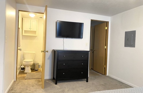 Enjoy a stylish and spacious living area with 2 comfy couches and a 50" Smart TV to relax and stream your favorite programs. You have a full kitchen with all essential appliances for creating your favorite home cooked meals. The bedroom has a queen sized bed and dresser. Attached is a full bathroom. Please note, the shower is not well situated for a tall person. Ceiling and shower head are both low because the shower is a step up. Please keep this in mind before you book.
