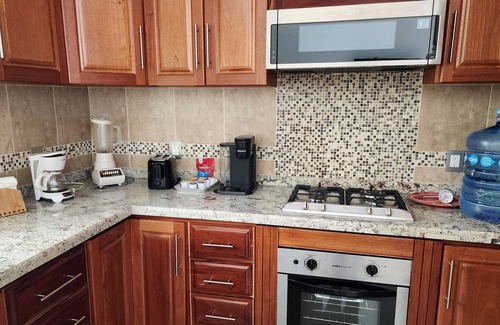 Prepare a home-cooked meal in the kitchen, complete with an oven and a refrigerator, as well as a coffee maker, a microwave, and cookware. Connect to the free WiFi, or get cozy in front of the Smart TV. Bathroom amenities include a hair dryer, towels, and toilet paper. And you won't have to pack extra clothes, because you'll have a washer and dryer, too. Other amenities at this 2-bedroom, 2-bathroom rental include bed sheets, an ironing board, and a dining table.