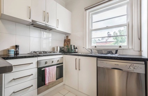 The bathroom has the convenience of a washing and drying machine, so you can feel fresh and at home for longer stays. Kindly note that this listing does not offer a dishwasher, and the one in the kitchen is not operational.