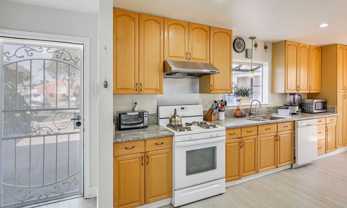 Welcome to the Central Home w/Grill < 3 Mi to Knott's Berry Farm, an inviting retreat in Buena Park, California, ideal for couples looking for a memorable wedding venue. This spacious 4-bedroom, 2-bathroom property provides a warm and romantic atmosphere that can accommodate family and friends while providing ample space for intimate wedding gatherings and receptions. The home's cozy elegance creates the perfect backdrop for celebrating your special day, and its outdoor areas offer a serene setting for post-wedding festivities.