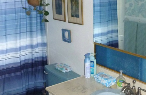 There is one bathroom with a shower and tub. Also 3 separate bedrooms. One with a Queen Bed and one with a Double and one with a Single Bed. The sofa in the living room is a hide a bed.