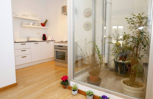 It is a loft-style apartment that has two single beds and a comfortable sofa bed with capacity for 2 people. A complete bathroom with shower tray and a toilet. The kitchen, integrated into the living room but separated by a beautiful interior patio with plants, is equipped with all the utensils and utensils necessary for your stay: ceramic hob, coffee maker, kettle, toaster, etc. We offer free Wi-Fi in addition to air conditioning and heating