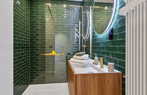Both bedrooms have super comfortable hotel beds, because "a good bed is worth its weight in gold". There is also a nice bathroom with rain shower.