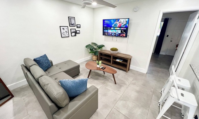 Unveil your ideal Fort Lauderdale escape! Nestled in a serene neighborhood just minutes from city buzz, this charming centrally-located apartment suits couples and solo adventurers on extended getaways. Stay seamlessly connected with high-speed internet and a dedicated workspace. Delight in complimentary parking, a well-equipped kitchen, a roomy and inviting bedroom, plus a sleek modern bathroom. Your snug home away from home beckons!
