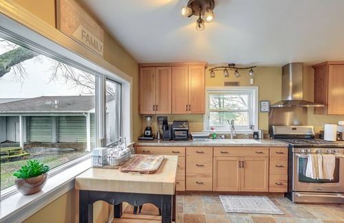 Get the historic feel with some modern conveniences when you stay at this Milan, OH, vacation rental. This 200-year-old hideaway is surrounded by farmland but just a short drive from lots of local fun. Hit the beach or get your boat out on the water at Lake Erie, spend the day on the rides and slides at Cedar Point, or sample local wines at tons of nearby vineyards and wineries. Head back to this 3-bedroom, 2.5-bathroom home after your adventures to play board games or relax in the jetted tub.