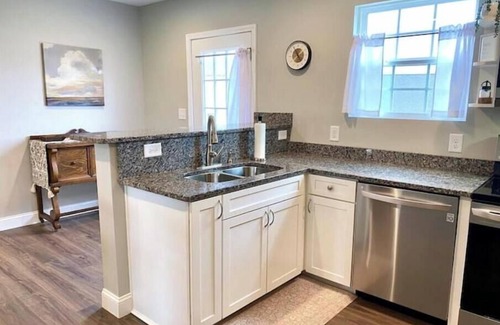 The home is NEW construction (2023) and has been curated with new and vintage pieces for a comfortable and streamlined home away from home. The space is equipped and ready for longer stays. Fully furnished kitchen makes cooking convenient. Each bedroom has a closet and blackout curtains to control lighting. Sleeps 5 total.