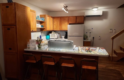 We occupy the main house year-round along with our furry companions, but give our guests complete privacy throughout their stay. This is achieved with a private drive and a separate entrance into the studio and apartment that is separate from the house.