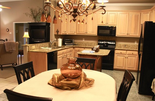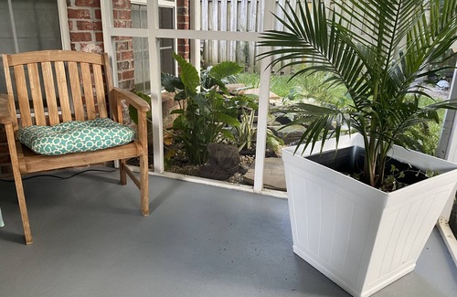 Sit on the back porch and listen to the frogs and cicadas along with the sound of trickling water from the pond waterfall. The master bedroom has a queen-sized Tempur-Pedic brand mattress. The attached bath accommodations include jetted tub and shower. There is a walk-in closet to store your travel items. The second bedroom holds a full-sized bed with a pull-out trundle single mattress. This bedroom is located across the hall from the second bathroom.The kitchen has granite countertops, a breakfast table, and an adequate collection of cooking pots/pans.